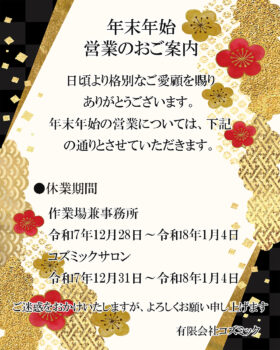 休業時のお問い合わせ、ご注文については仕事始め(1月5日)より順次ご対応させていただきます。